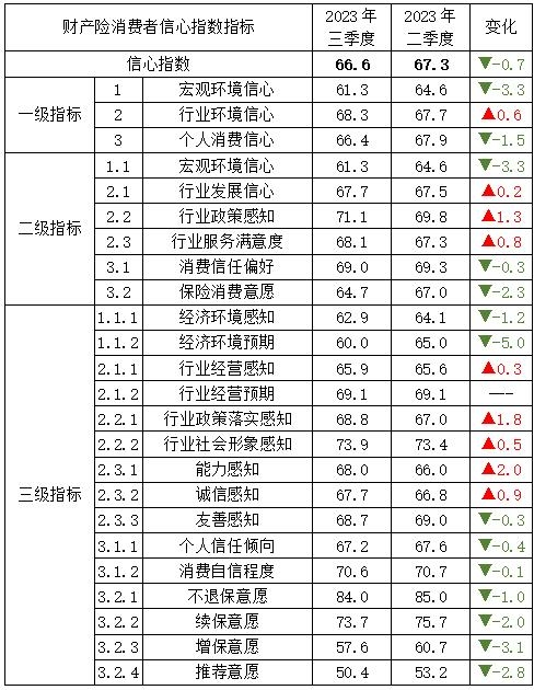 【指數(shù)成果】2023年三季度中國保險消費者信心指數(shù)66.9