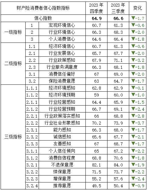 【指數(shù)成果】2023年四季度中國保險消費者信心指數(shù)65.3